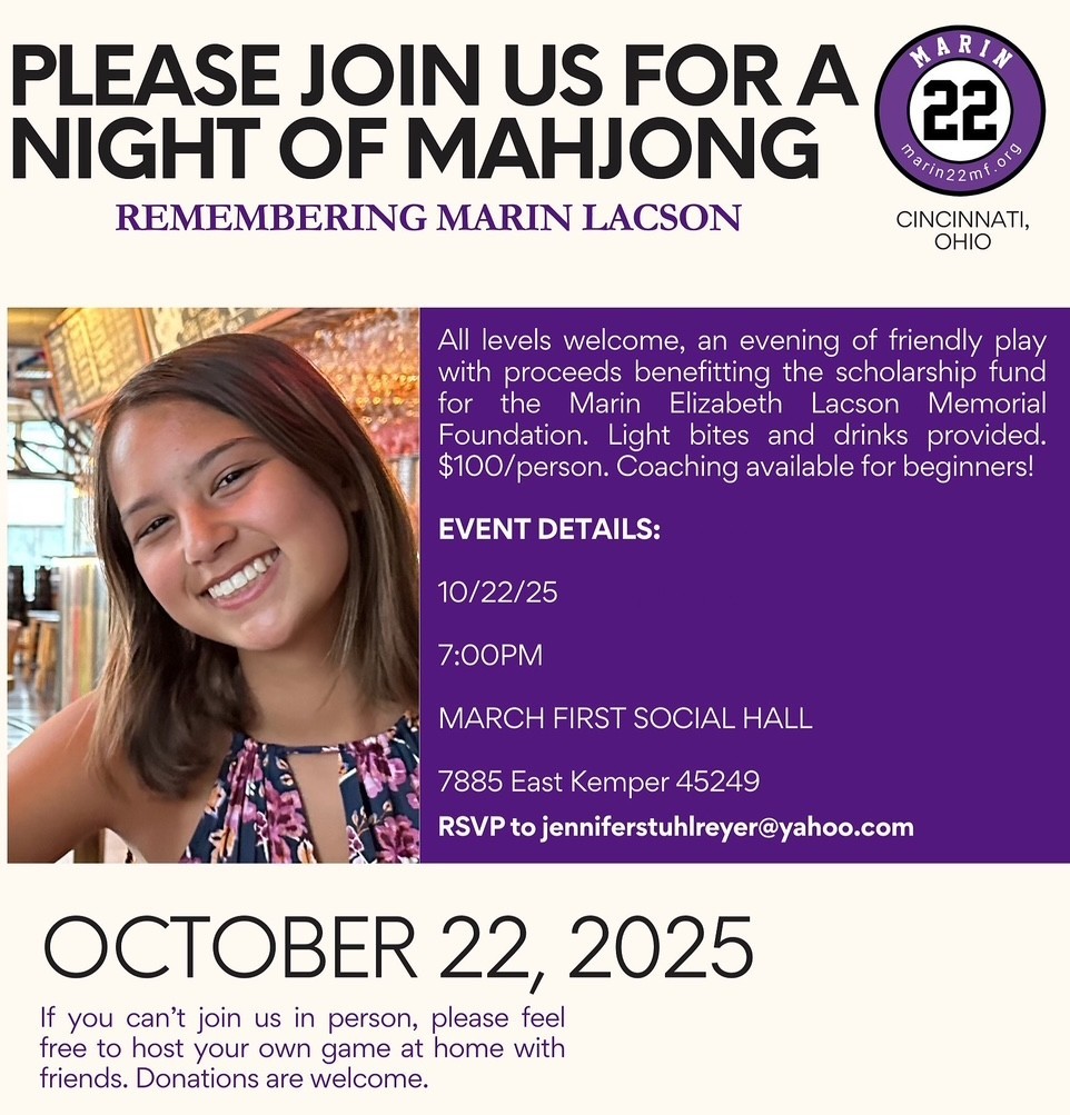 A special thank you to Jennifer Stuhlreyer for hosting this incredible, fun-filled event with the Cincy Mahjong Club at March First Social Hall. This meaningful gathering marked the first Cincinnati event for the Marin Elizabeth Lacson Memorial Foundation—held in a city where Marin has family. It also represents an exciting milestone as we expand our efforts and continue Marin’s legacy into the state of Ohio.