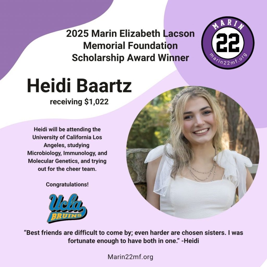 This year is an important one since it’s the year that Marin would have graduated high school. We have decided to award 13 scholarships to deserving students to help them pursue their dreams and continue to make an impact. We are very proud of this year’s recipients who all possess the character and virtues worthy to be Marin’s Friends and can’t wait to see what they do.